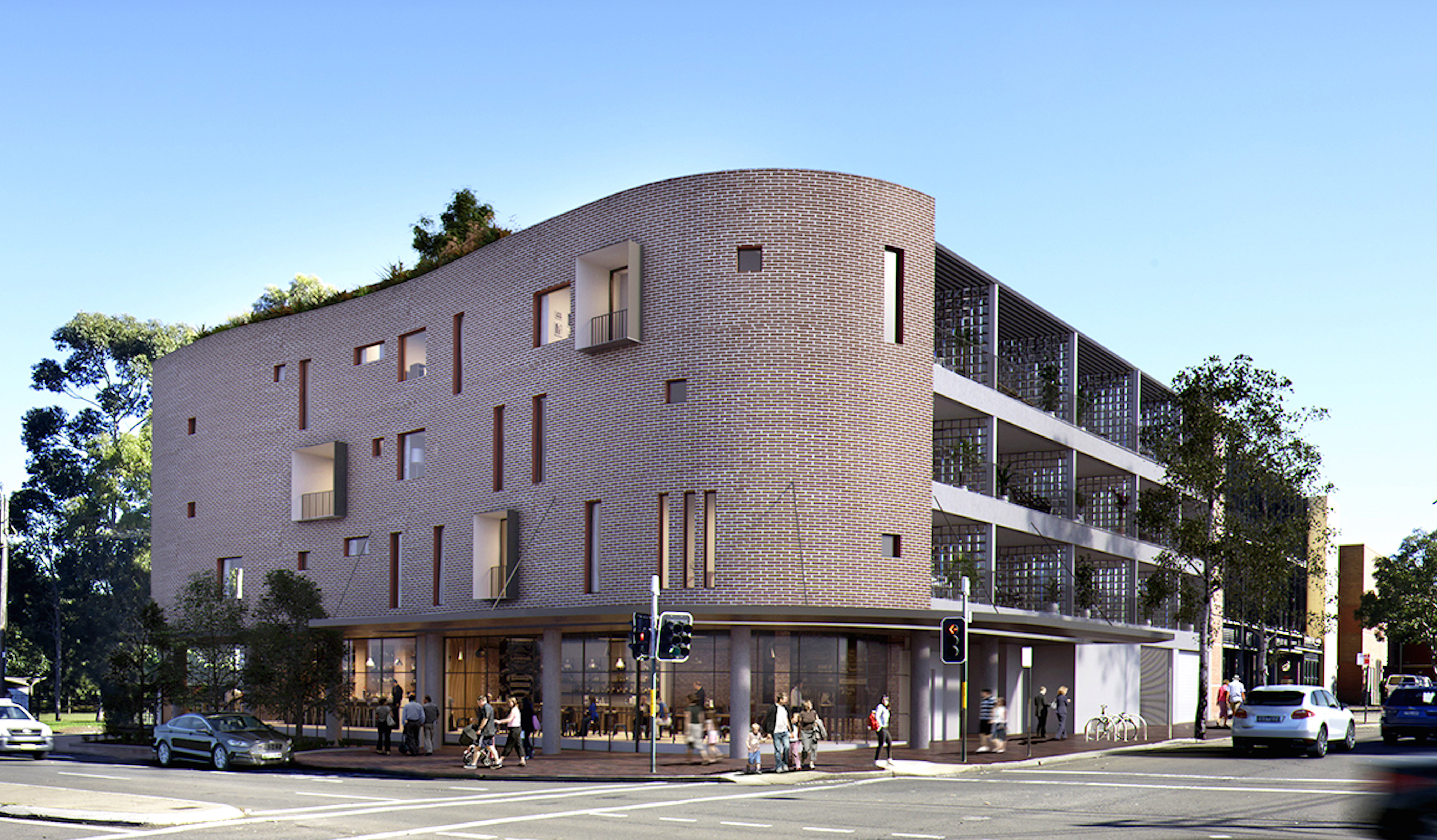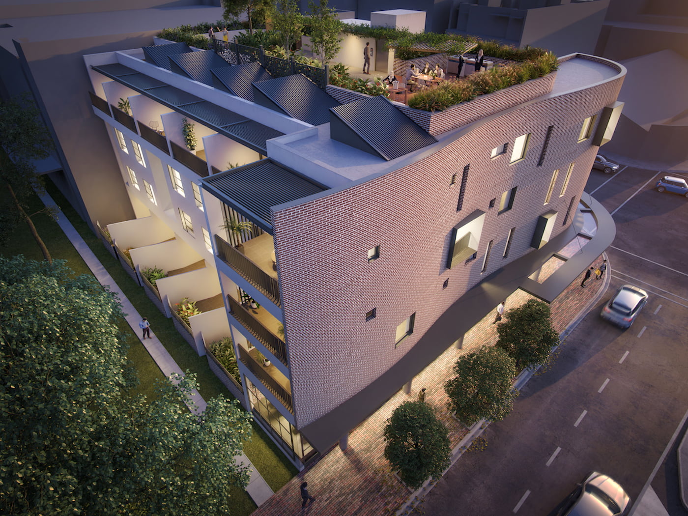 Located on the fringe of the Sydney CBD, this mixed-use development adjoins Australia Technology Park, the historic former site of the Eveleigh Railway Yards. It responds deftly to both its heritage context and SEPP 65, delivering 28 luxury apartments and ground floor retail within a mid-rise form that mirrors the design vocabulary of historic buildings through sawtooth roofs, clerestory windows, and a sculptural curved masonry wall.