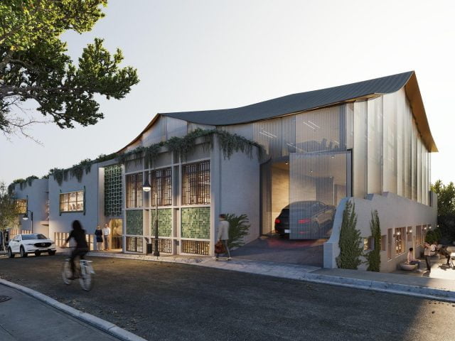 This proposed 4-storey office building in inner-city Sydney maximises the site’s potential while meeting the planning controls within the City of Sydney Local Environmental Plan (LEP). Designed to accommodate a future street planned toward its eastern side, the building features a ribbon of active street frontage that enables the incorporation of a cafe into the corner of the building at ground level, above which sit three storeys of flexible office space. Deep balconies maximise access to natural light year-round, while horizontal fins on the northern facade provide shading from the strong mid-afternoon summer sun.