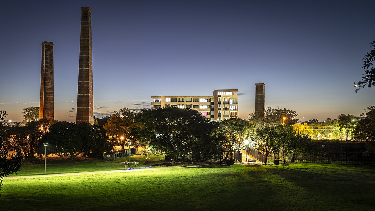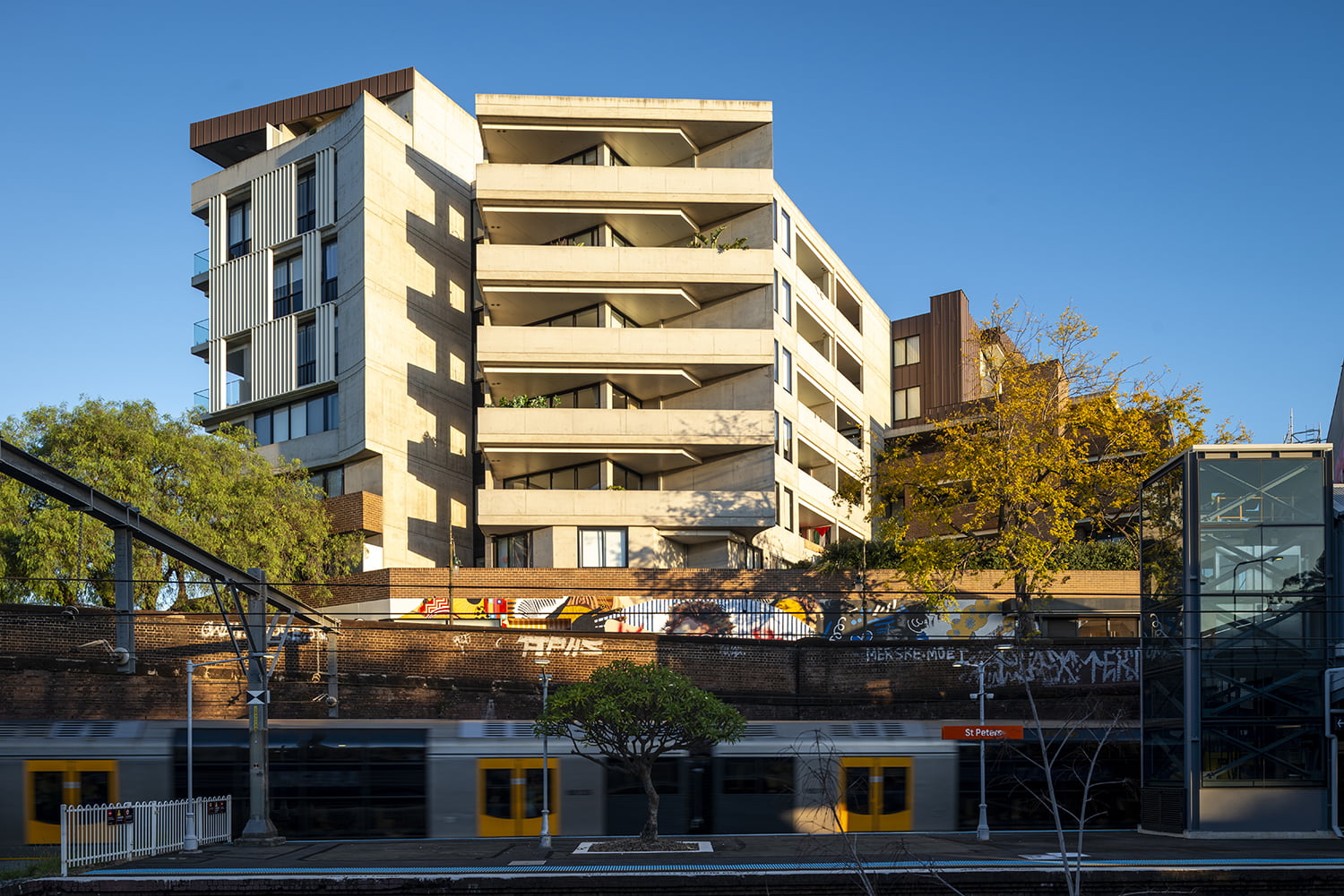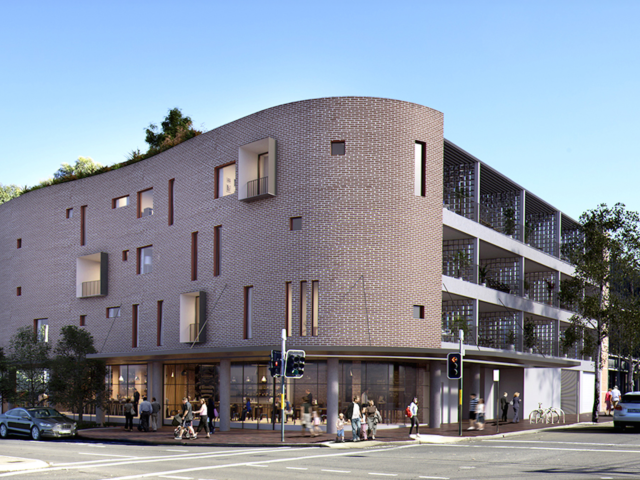 BKA has designed a mixed-use project which has recently been completed on 641 King Street, St Peters. The project contains 59 apartments above a commercial floor with two basement levels of parking. Drawing reference from the former brick pit situated opposite the road, the horizontal brick façade of the lower levels creates a podium-like base that grounds the building. The overall composition of the building is carefully sculpted to respond to its neighbouring context, whilst a contemporary architectural expression gives visual strength to the project.