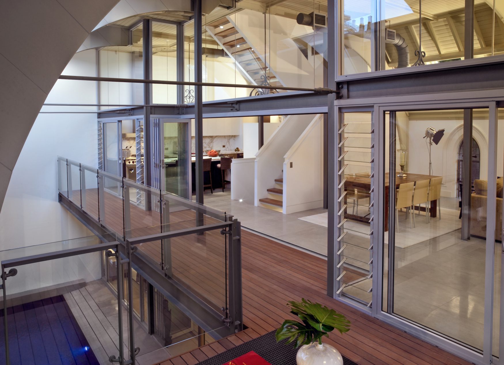 For this luxury development on the site of Sydney’s last mill, BKA inserted two spacious apartments into the shell of a substantially intact early ecclesiastical Gothic church. Two terrace houses were also built adjacent to the church, with all three volumes responding to the proportion, scale, and rhythm of their late Victorian and early Federation neighbours. Restrained colours and a shared palette of timber and stone bridge the divide between old and new, while lighting and landscaping additions breathe new life into the remaining historic fabric.
