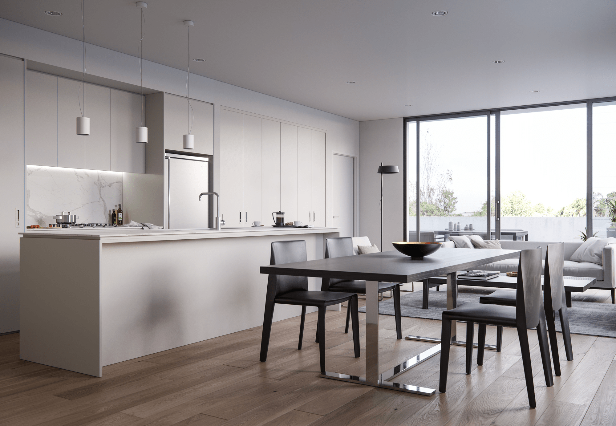 Located on a major arterial road in Sans Souci, in Sydney’s South, this 5-storey mixed-use development combines high amenity apartments with ground floor commercial space. On the upper levels, three streamlined forms comprising a combination of 1, 2, and 3 bedroom apartments are arranged in a horseshoe shape that maximises daylight penetration and ventilation in each apartment. A landscaped courtyard garden at the centre of this horseshoe configuration provides sheltered communal space for residents, while an active rooftop encourages community interaction and outdoor recreation.