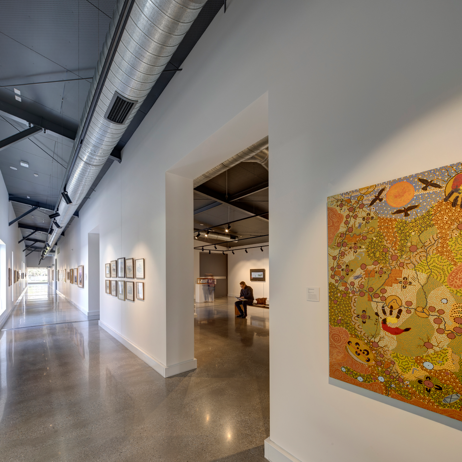 The new Singleton Arts and Cultural Centre promotes creative activities in the Hunter Valley, providing space for local art shows and international exhibitions. Located on a floodplain, the gallery sustains a flexibility throughout, catering to various demographics and changes in exhibitions, with the design being “future-proofed” to allow for further expansion. Windows of different heights and sizes perforate the concrete envelope, providing a spectrum of perspectives to be enjoyed by both young and old. As a result, art and culture are not only appreciated by the community, but also created. Photography by Lindsay Moller Productions