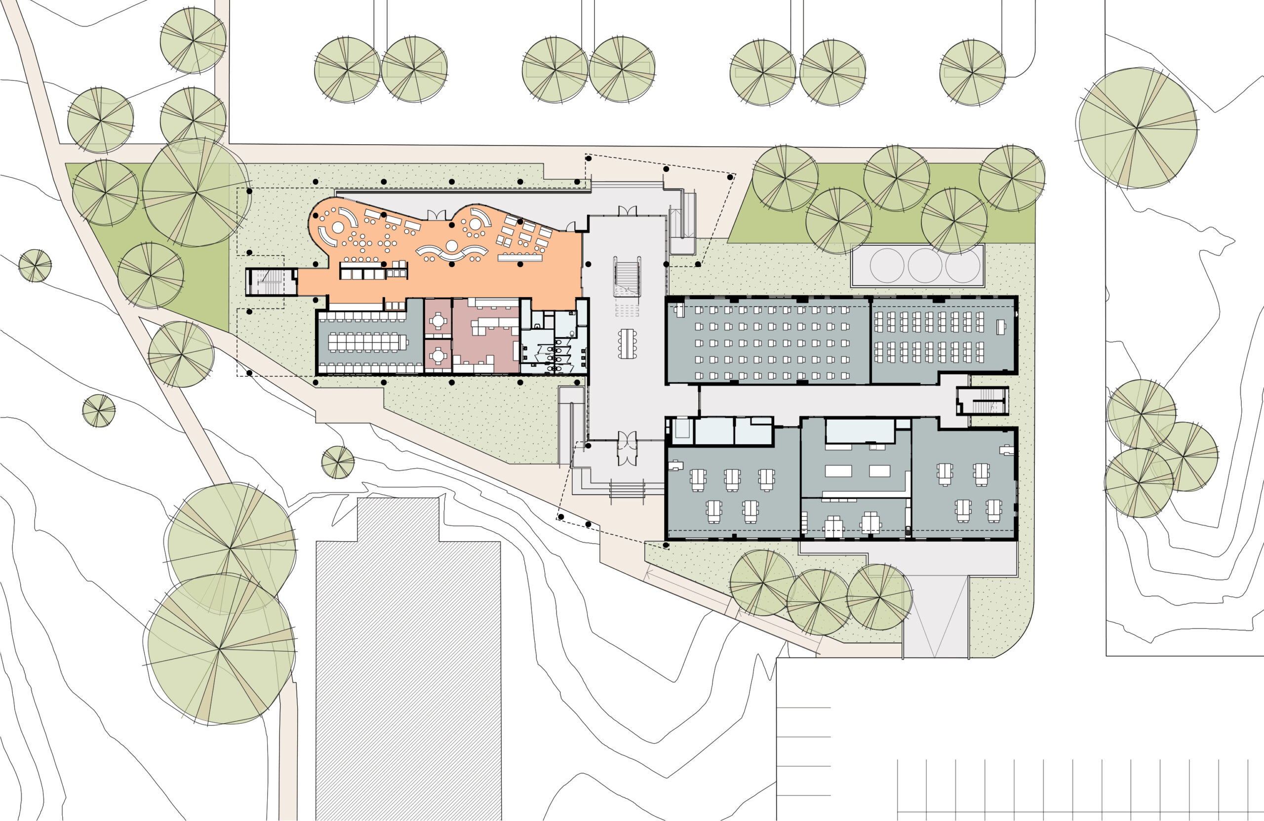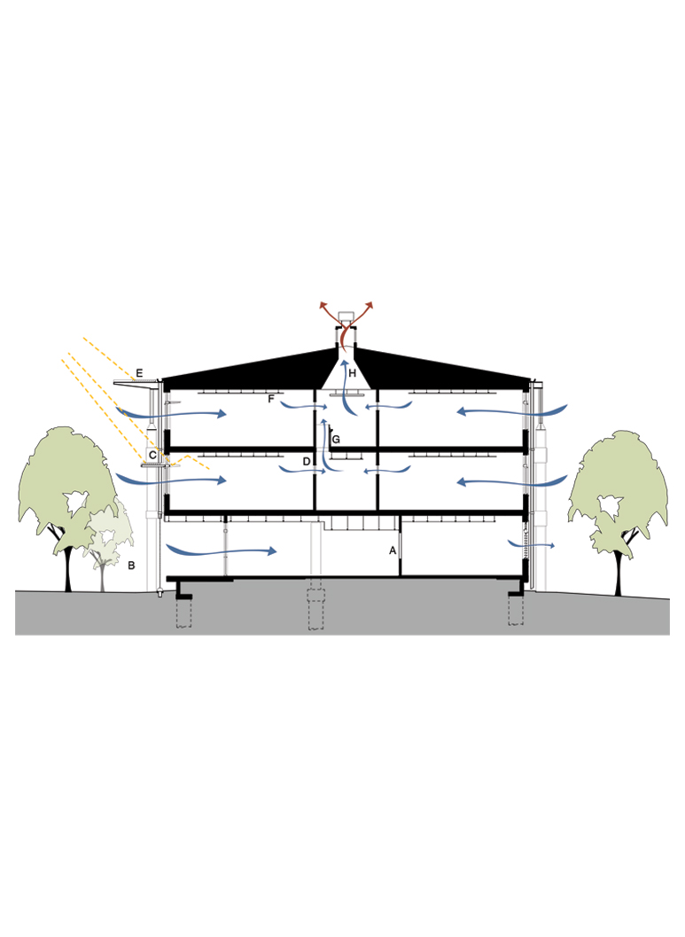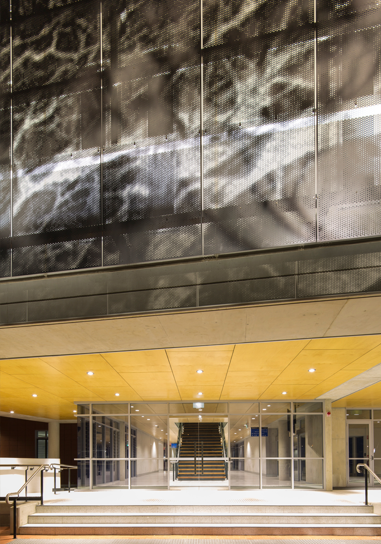 This 5 Star Green Star-designed teaching facility on WSU’s Bankstown campus takes a progressive approach to sustainability and education design. Organised in two 3-storey wings that intersect at a full-height public core, the facility incorporates future-focused elements including flexible learning spaces, Iaboratories, studio spaces, a lecture theatre and integrated ICT. Complementing this is a range of sustainability measures including a BMS mixed-mode integrated ventilation system, night flushing via automated louvres, and public spaces ventilated naturally through the stack effect.