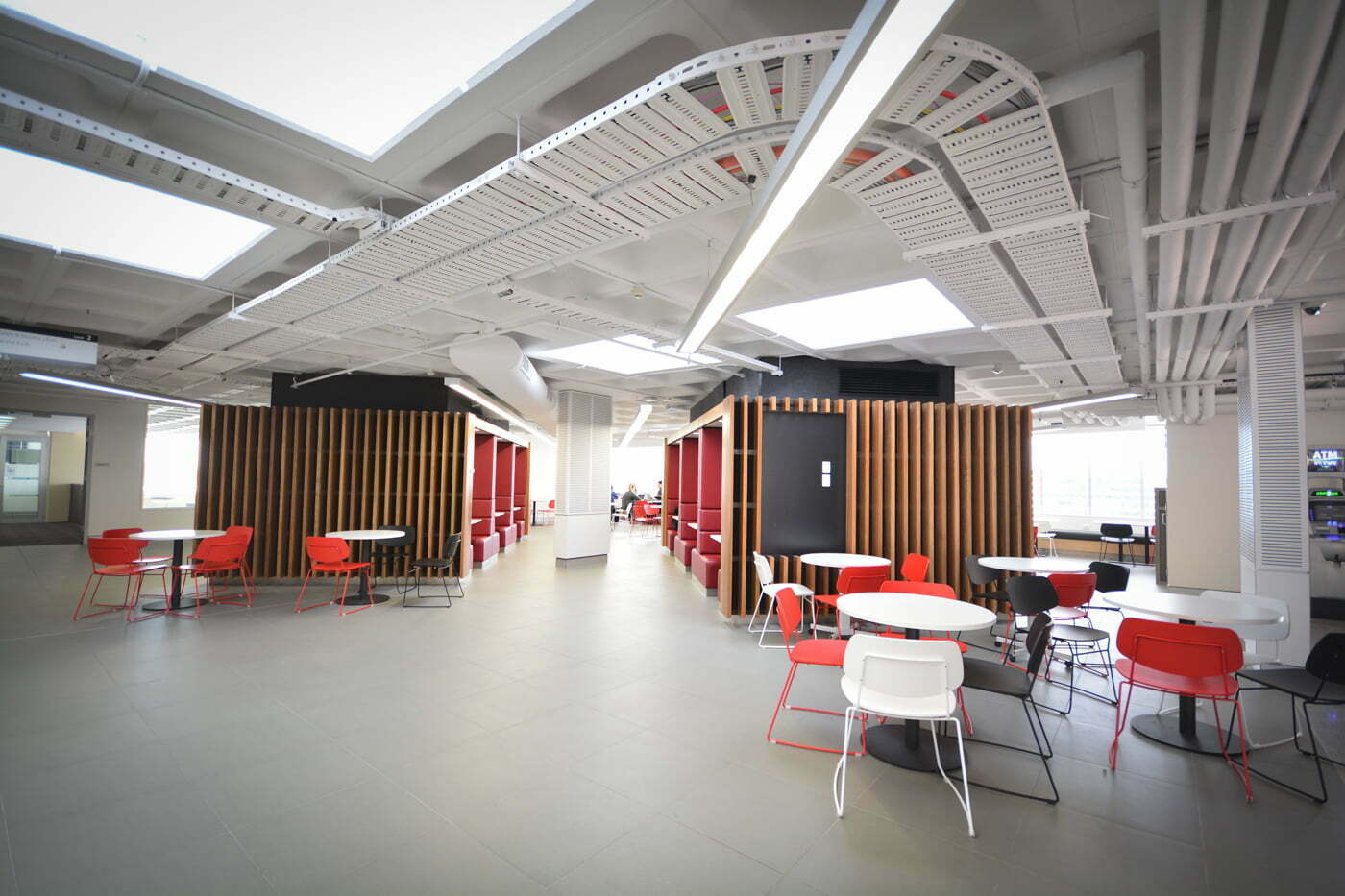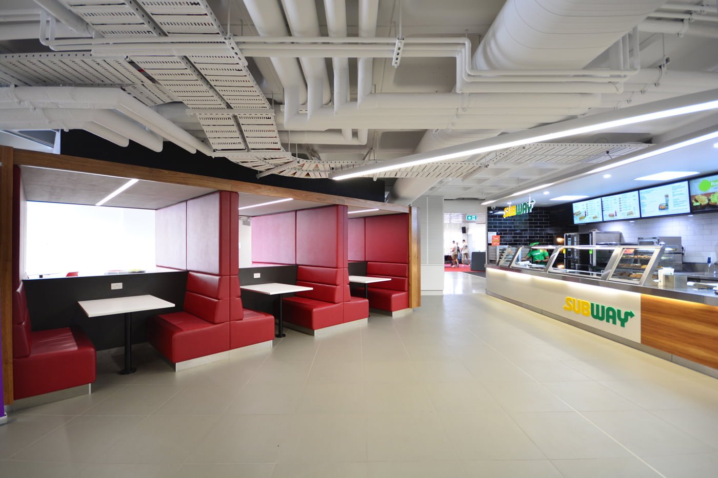Western Sydney University engaged BKA Architecture to upgrade existing office space on the Kingswood Campus, Penrith, and create a new central hub and learning spaces. The refurbished space features a food court, cafe and recreational student lounges, associated amenities, and loading facilities, and has become an essential pillar of on-campus student life.