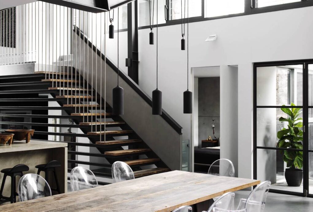 Conversion of Paddington warehouse to modern, spacious, light-filled home. Originally an industrial building and then converted into office space for architectural and design firms. Responding to the challenges of the existing building fabric, this residential conversion maintains an industrial edge using exposed, concrete, stone and glass.